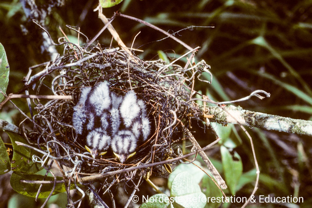 Nests are shallow, cup-shaped, and sometimes partially transparent. They are usually built 1 to 3 meters above the ground in the forks of small trees such as citrus, guava, and other fruiting species. Occasionally, nests are found in unusual places like orchid clusters or even on electric meters. In some regions, nests were placed on trees like Annona, Eriotheca, Qualea, and leguminous species like Geoffroea decorticans and Prosopis. Those nests were found from 1.6 to 12 meters above the ground, often exposed or built on epiphytes such as Tillandsia.