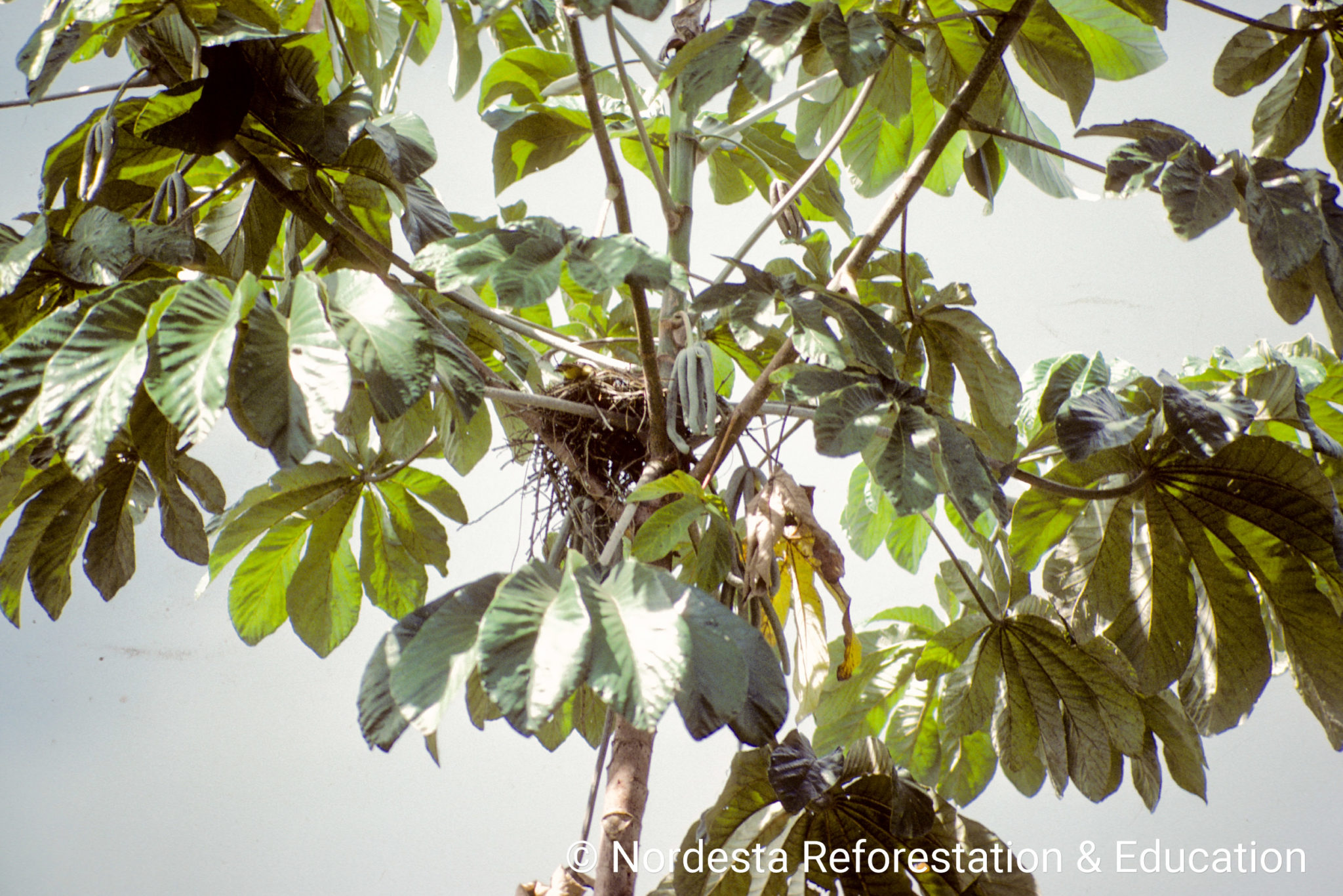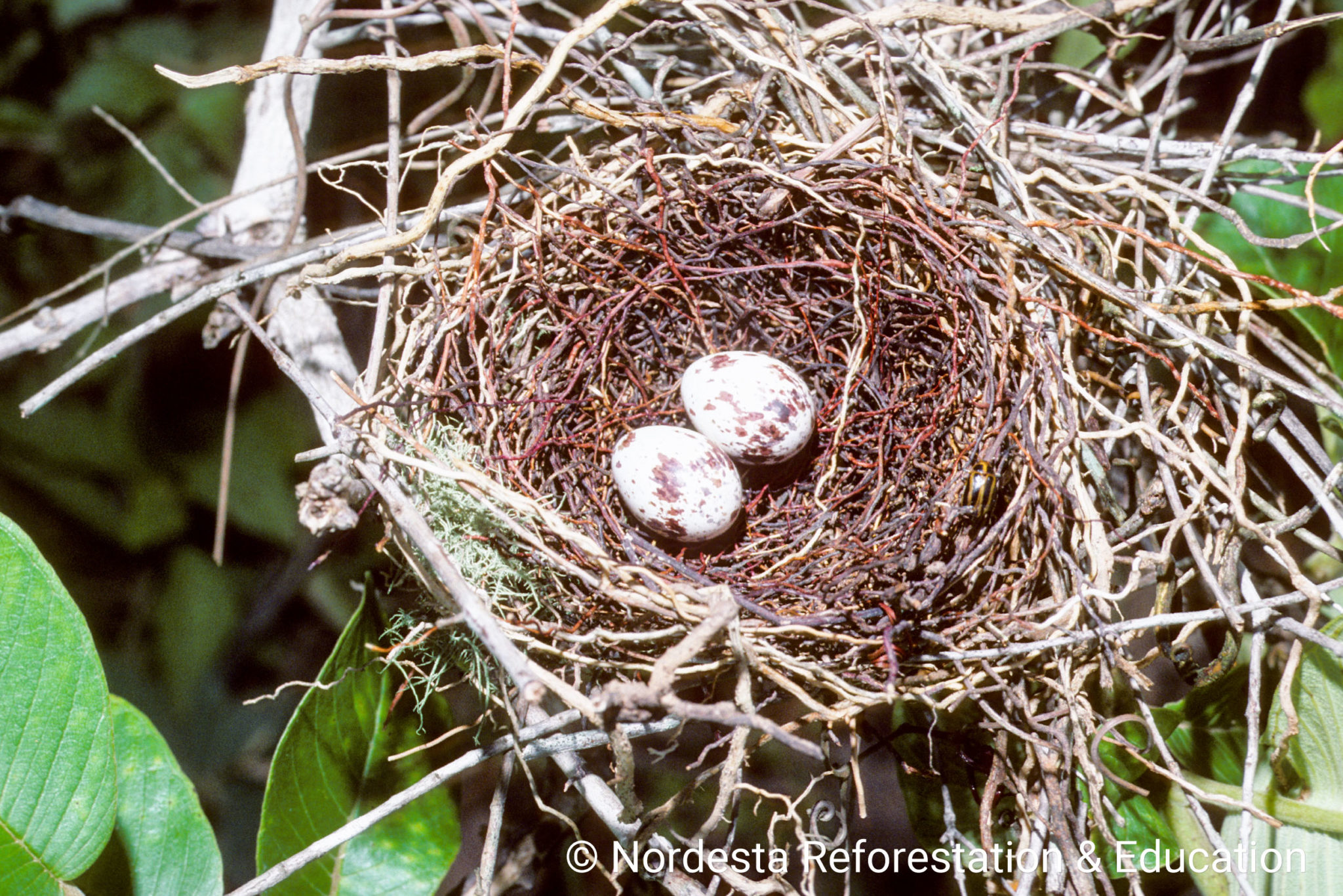 Nests are shallow, cup-shaped, and sometimes partially transparent. They are usually built 1 to 3 meters above the ground in the forks of small trees such as citrus, guava, and other fruiting species. Occasionally, nests are found in unusual places like orchid clusters or even on electric meters. In some regions, nests were placed on trees like Annona, Eriotheca, Qualea, and leguminous species like Geoffroea decorticans and Prosopis. Those nests were found from 1.6 to 12 meters above the ground, often exposed or built on epiphytes such as Tillandsia.