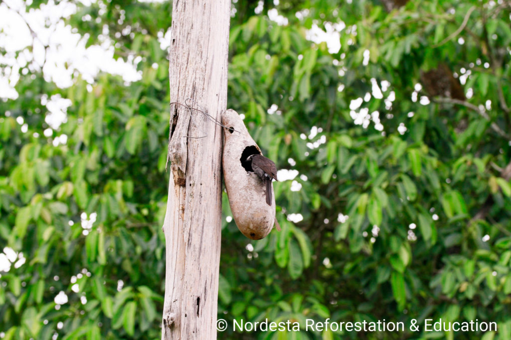 Nests are placed in cavities in trees, fence posts, hanging gourds, or other suspended containers found on farms. Sometimes, they reuse nests from other species, such as the Rufous Hornero, Furnarius rufus. In Argentina, a nest was even found in a cavity made by a woodpecker.