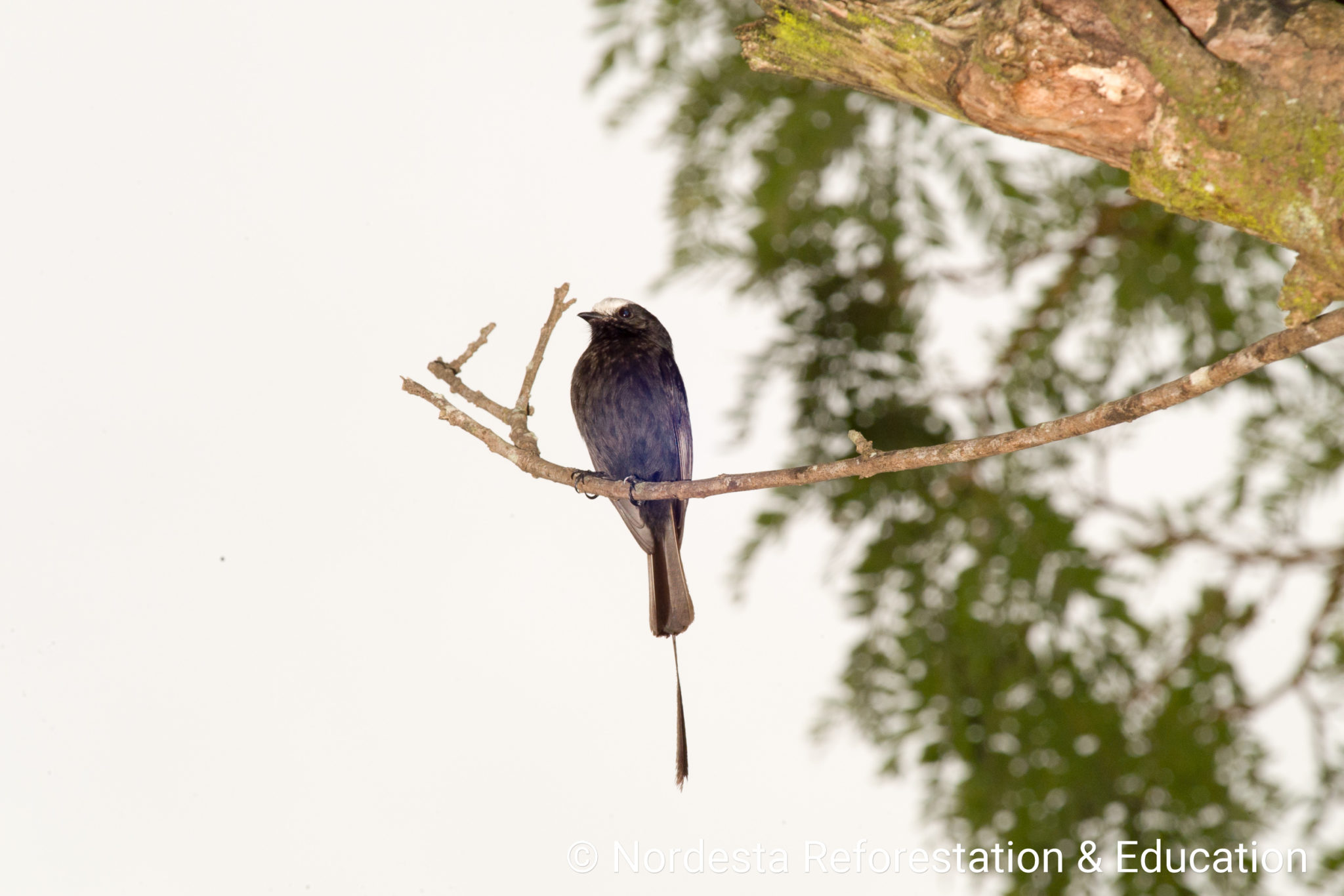 This bird occupies diverse habitats, such as forest edges, clearings within wooded areas, gallery forests, riparian zones, active or abandoned plantations with scattered trees, and open fields with shrubs, rivers, lakes, or wetlands.