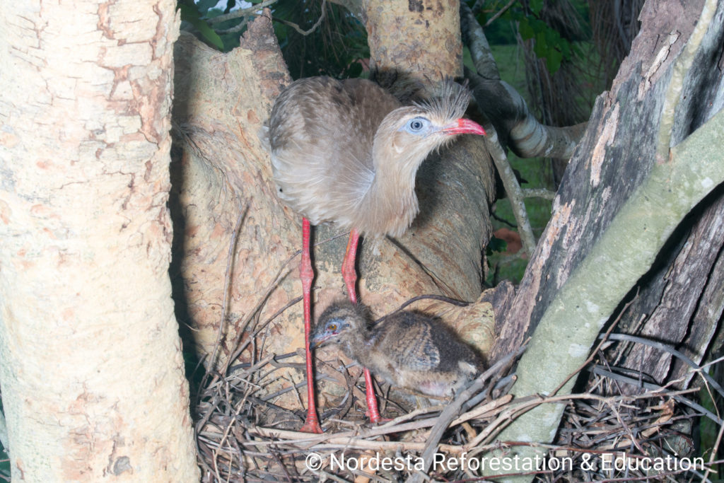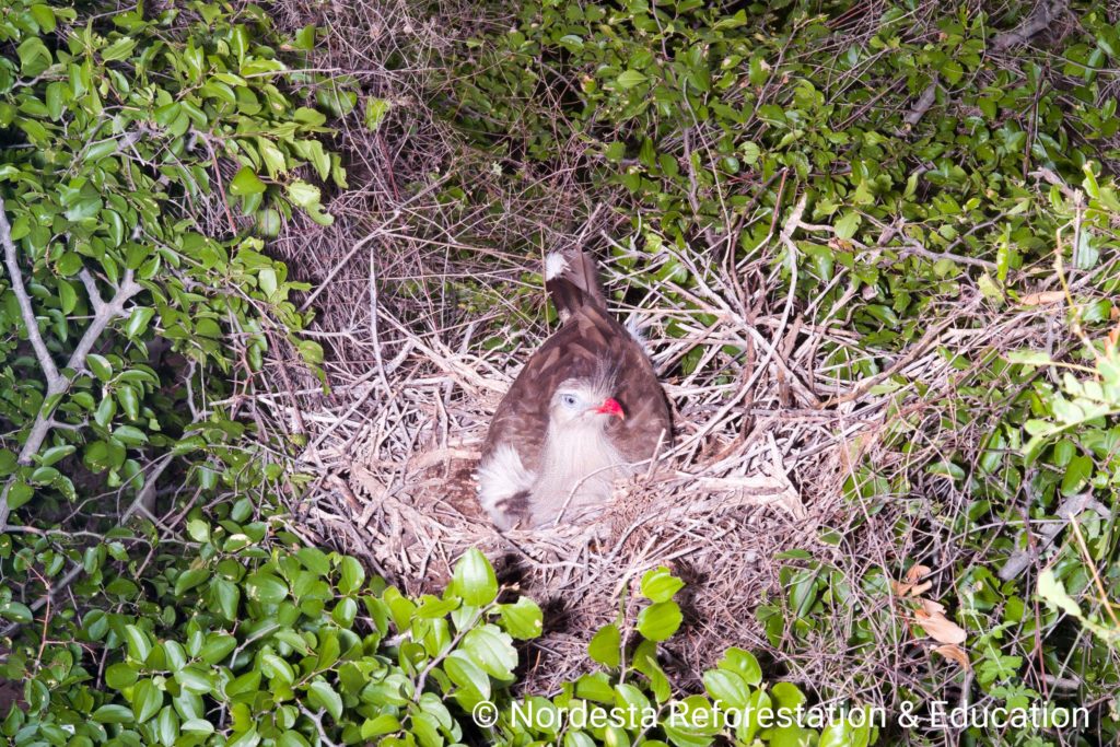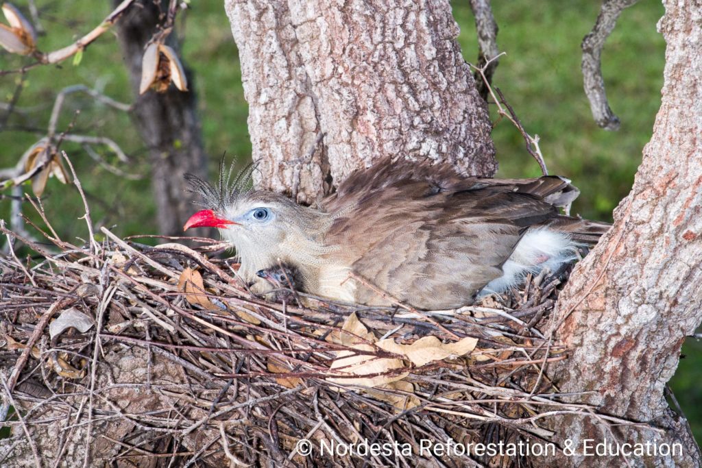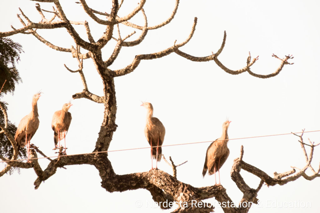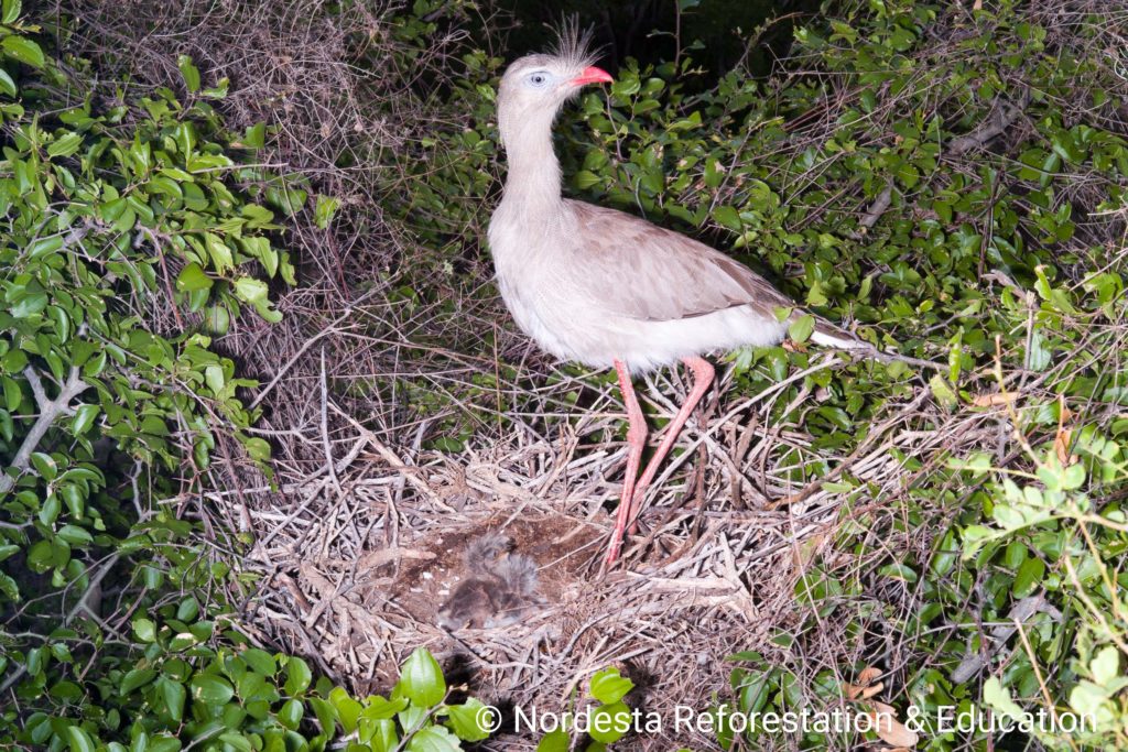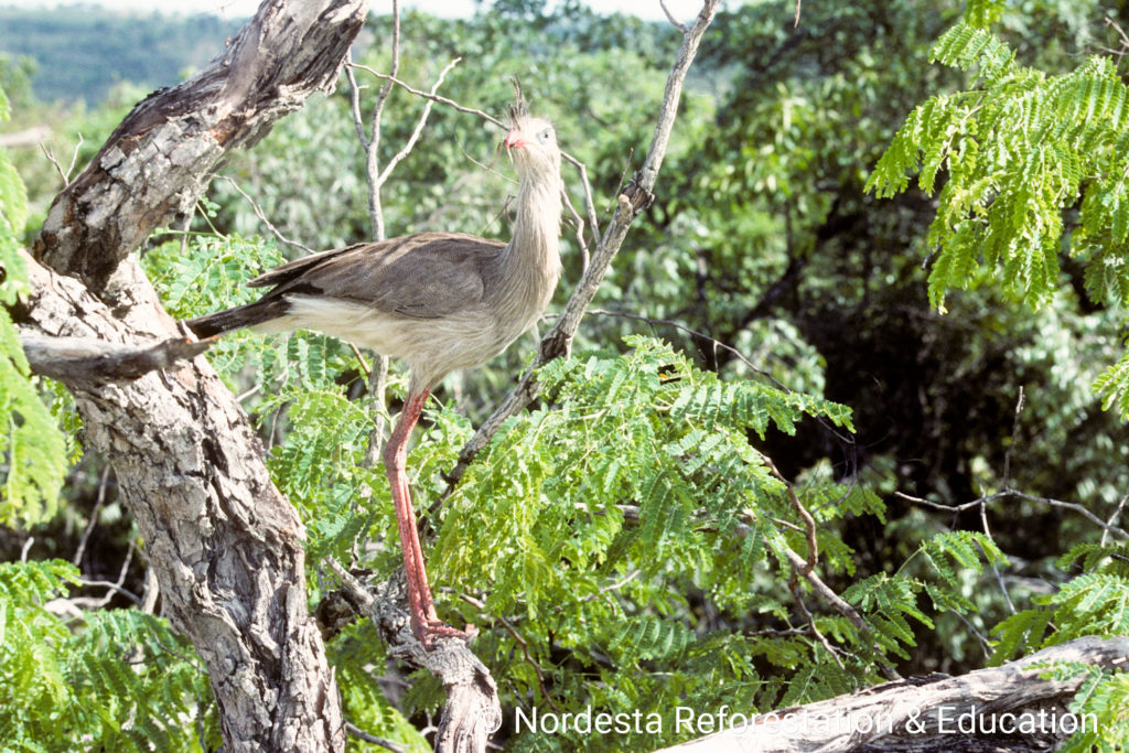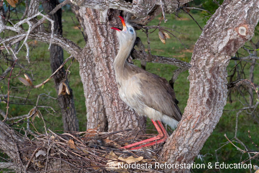 The Red-legged Seriema, Cariama cristata is a terrestrial bird found in several areas of Brazil. It is known for its loud vocalizations, long legs, and distinctive behaviour, especially during the breeding season.