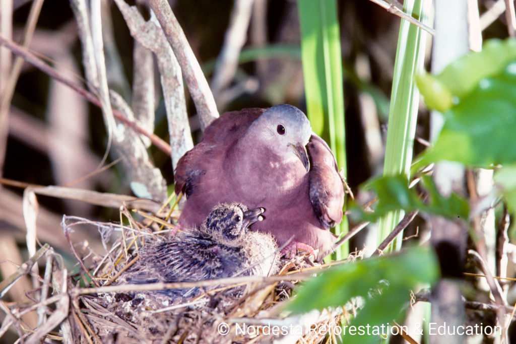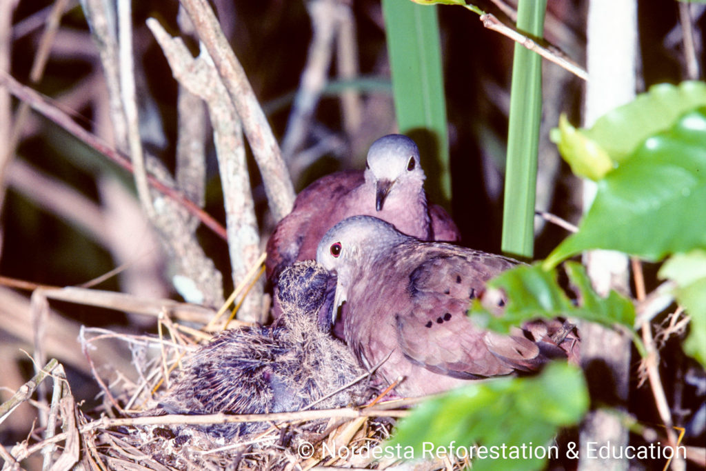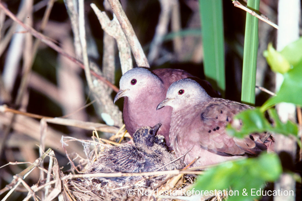 This dove is known for its adaptability and year-round breeding behaviour. Pairs often raise multiple broods in a single year, and both parents participate in building the nest, incubating the eggs, and feeding the chicks. Nestlings are cared for by both adults until they fledge, typically within two weeks.