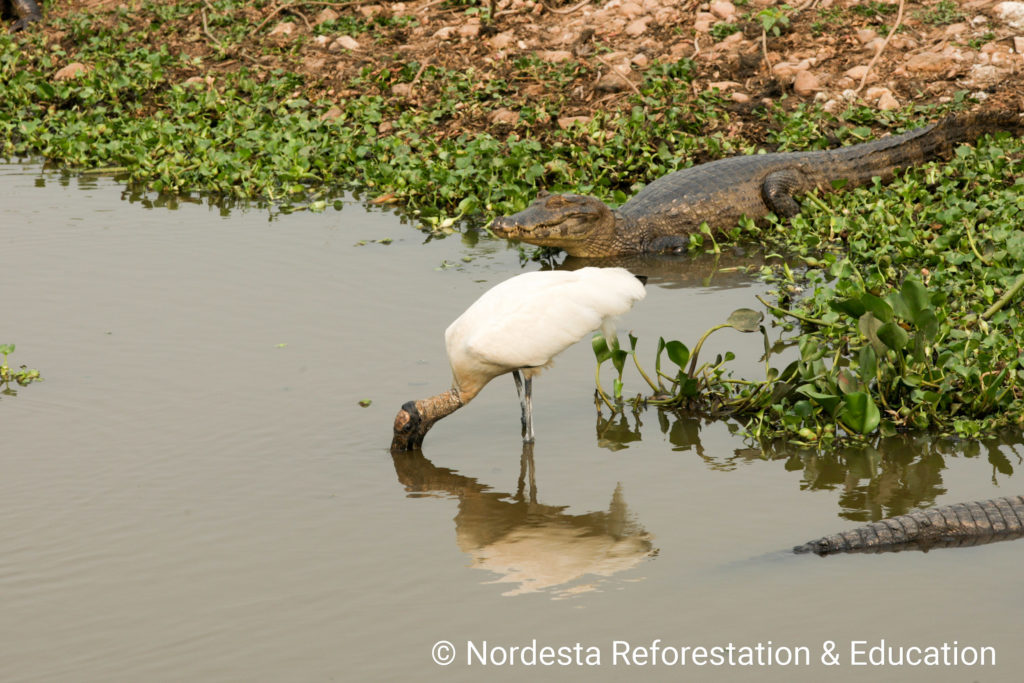 The Wood Stork, Mycteria americana, is a large, unmistakable bird recognized by its white body, black flight feathers, and long, curved beak. It ranges from the southern United States down to northern Argentina and is widespread across Brazil. Unlike many storks, it often ventures into human-altered environments, including rice fields and artificial ponds.