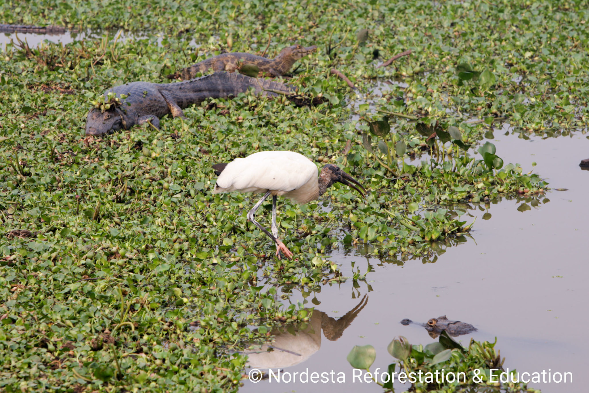 The Wood Stork, Mycteria americana, is a large, unmistakable bird recognized by its white body, black flight feathers, and long, curved beak. It ranges from the southern United States down to northern Argentina and is widespread across Brazil. Unlike many storks, it often ventures into human-altered environments, including rice fields and artificial ponds.